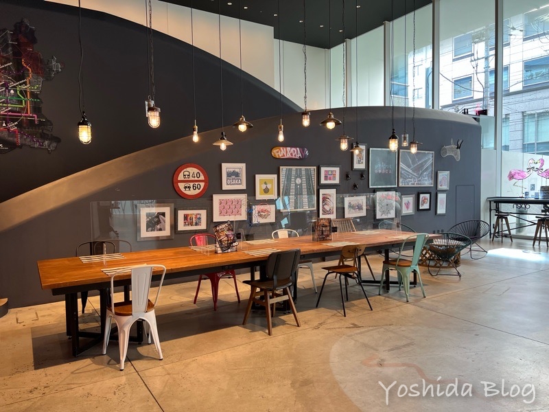 遊び心満載のアーティスティックなインテリア、1Fロビーのカフェ&バーが魅力のモクシー大阪本町。