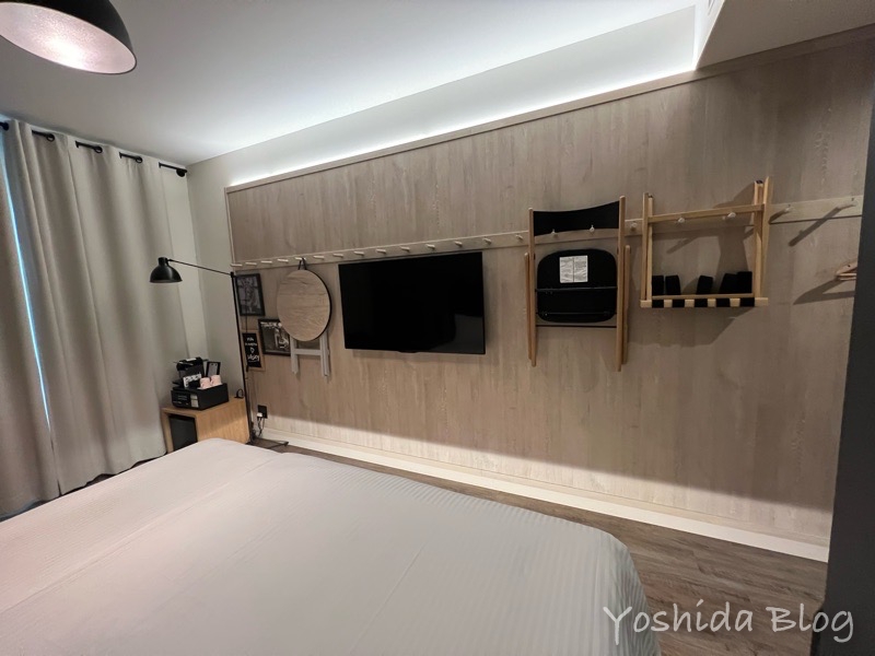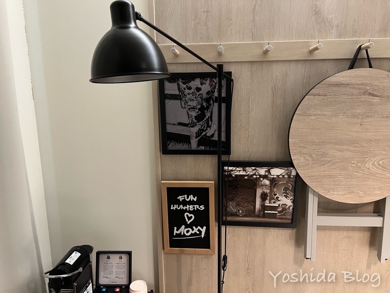 今回宿泊したモクシーシグニチャールームにはクローゼットはありません。