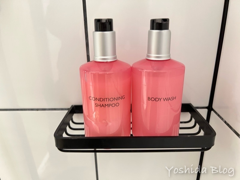 シャンプーボトルもピンクでオシャレです。